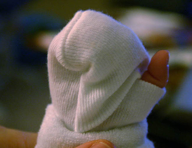 Yeah, I don’t mind baby talk one bit. Though I do think you should teach him how to stick up other fingers. It’s a handly (and universal I have learned) gesture.